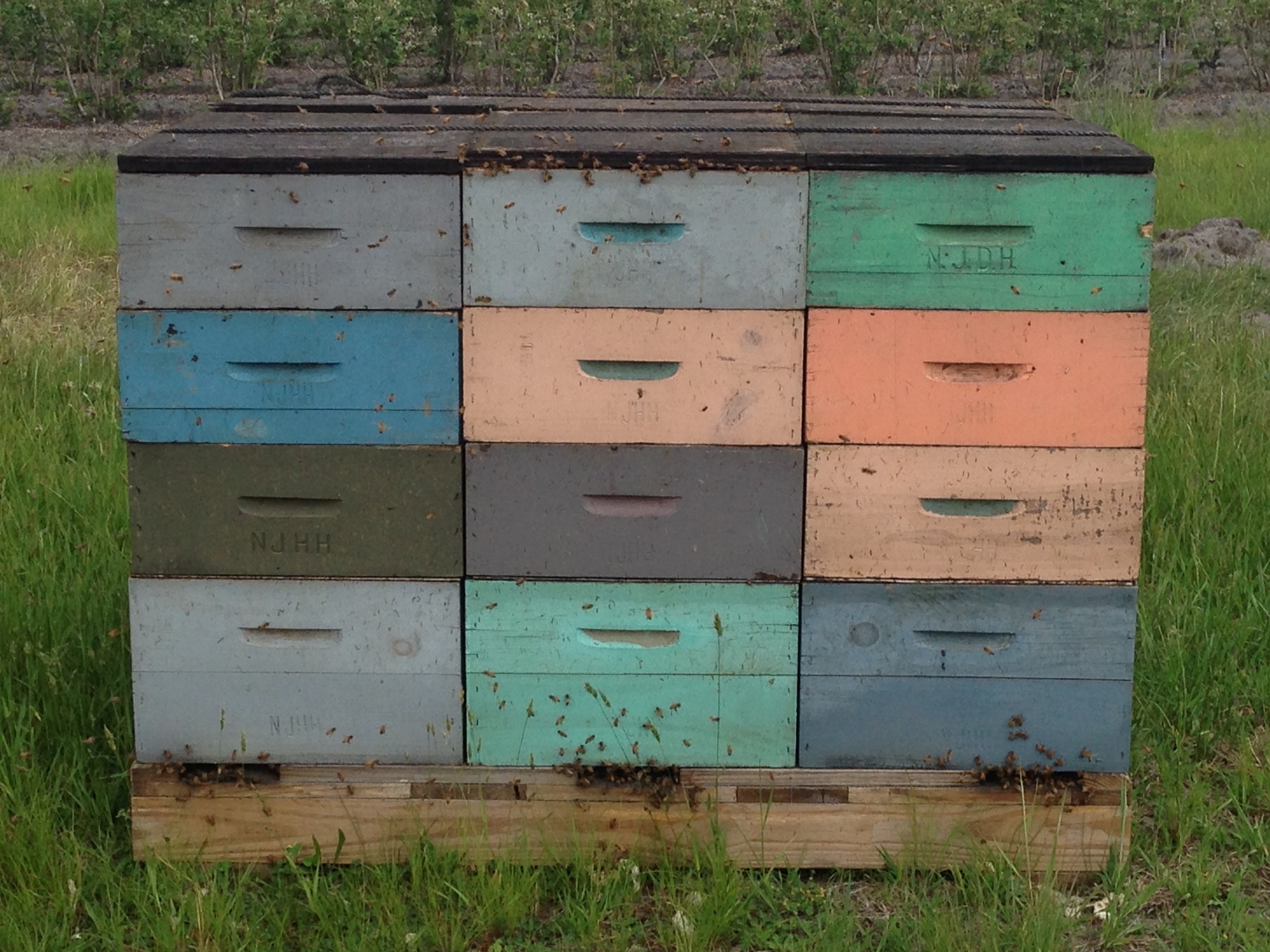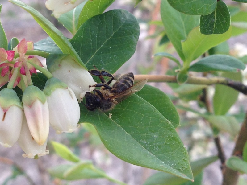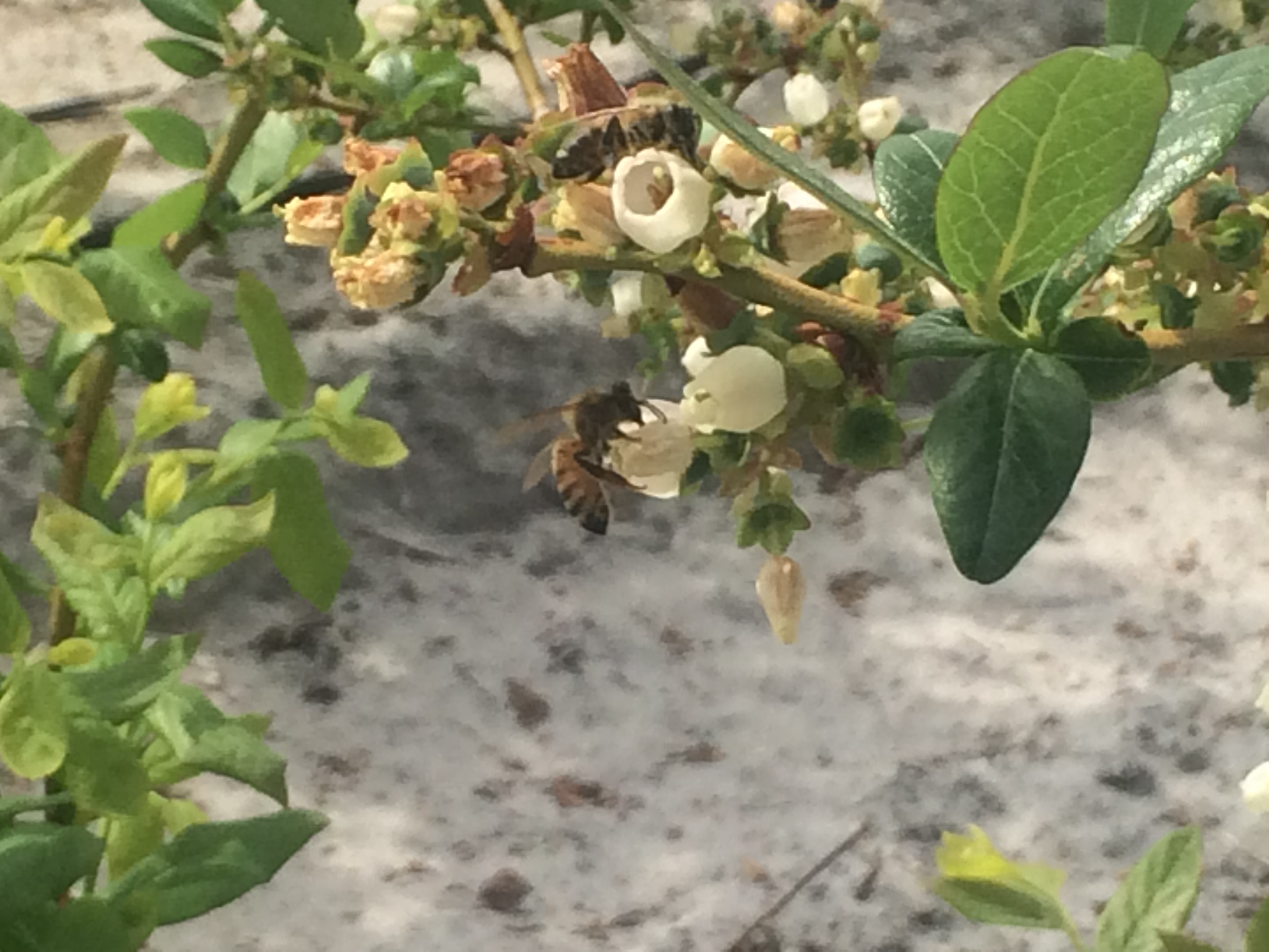 Blueberries in bloom                              Bee pollinating the flower                                  Another pollination                                   Busy as a bee (the hive)